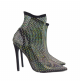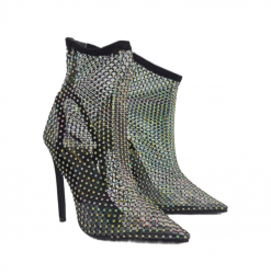 Bottine femme pointue à talon de 12 cm en maille perforée et strass Les bottines sont réalisées en maille perforée, une matière légère et respirante qui garantit un confort maximal. La pointe est pointue, pour un look féminin et sophistiqué. Le talon aiguille mesure 12 cm de haut, pour une élégance intemporelle. Des détails en strass sont appliqués sur la tige pour une touche glamour et pétillante.