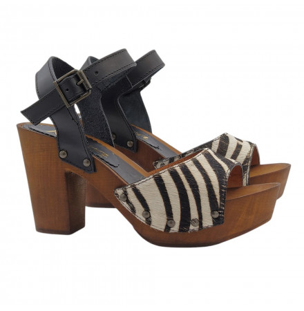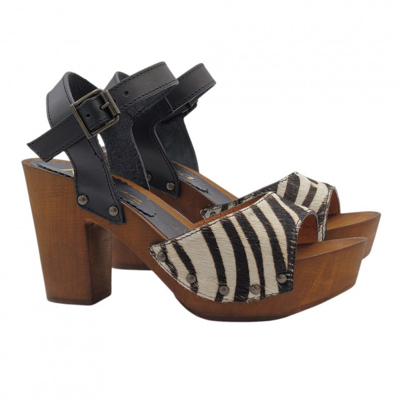 SABOTS EN CUIR ZÈBRE À TALON DE 9 CM