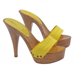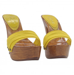 Un mélange parfait d'élégance, de confort et de bonne qualité. Ce zoccoli da donna con base effetto legno sono l'ideale per chi desidera slanciare la figura senza rinunciare alla stable. Le design avec deux fascia gialla dona a tocco vivace e raffinato, parfait pour tout look estivo.