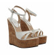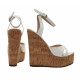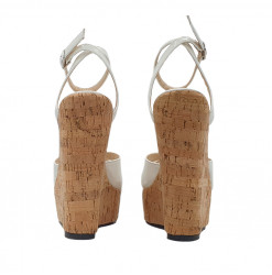 SANDALE À TALON COMPENSÉ EN LIÈGE ET TIGE EN BREVET BLANC. SANGLE DE CHEVILLE RÉGLABLE. HAUTEUR CALE 14 CM + PLATEFORME 4 CM. COMPLÈTEMENT RÉALISÉ PAR UN PERSONNEL HAUTEMENT SPÉCIALISÉ.