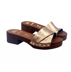 SABOTS BAS AVEC DOUBLE BANDE EN CUIR TACON 4,5 CM - MY191 FUCILE