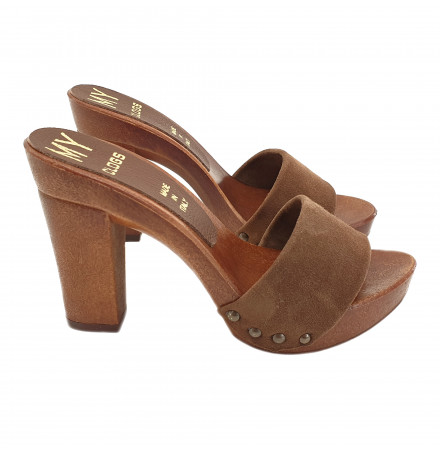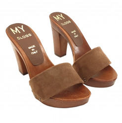 SABOTS AVEC BANDE MARRON EN CUIR DAIM - MY810 CAM MARRONE