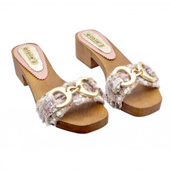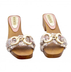 SABOTS BAS AVEC BANDE TRESSÉE ROSE ET ACCESSOIRE OR - GM93466 TWEET ROSA