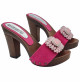Sabots fuchsia en daim avec talon 10 et bijou - G8051 CAM FUXIA
