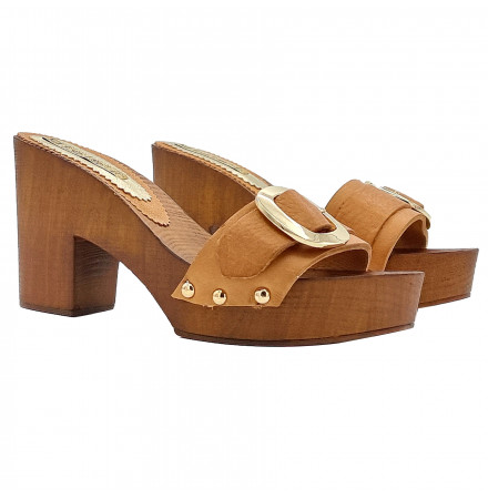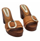 sabots en cuir véritable avec accessoire doré