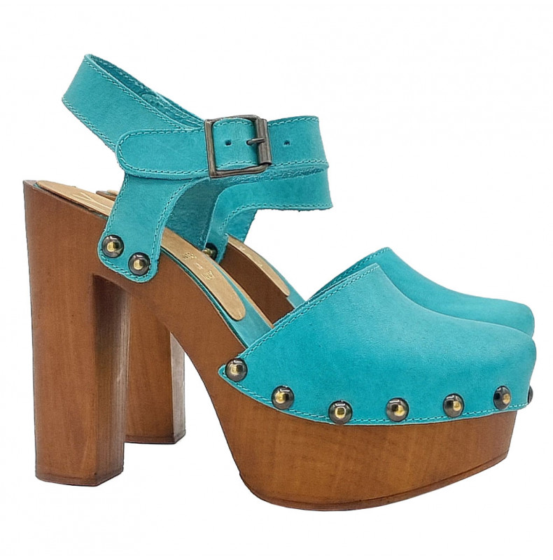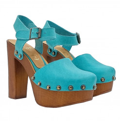 SABOTS SUÉDOIS À TALON HAUT - MY462 TURCHESE