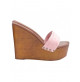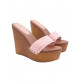 SANDALES À TALONS COMPENSÉS AVEC DOUBLE BANDE ROSE