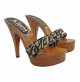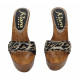 SABOTS AVEC BASE EFFET BOIS ET DOUBLE BANDE DE COULEUR LÉOPARD.