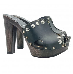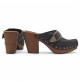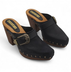 Sabots pour femme avec tige en cuir noir et talon de 9 cm - Fabriqués à la main