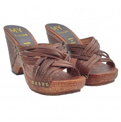 Sabots pour femme en cuir véritable avec détails métalliques et fabrication artisanale italienne, synonymes de qualité et de style intemporel.