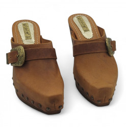 Sabots femme avec tige en cuir et talon de 9 cm - Style vintage