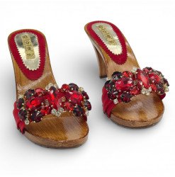 ZOCCOLI DA DONNA CON TACCO DA 9 CM, doppia fascia rossa